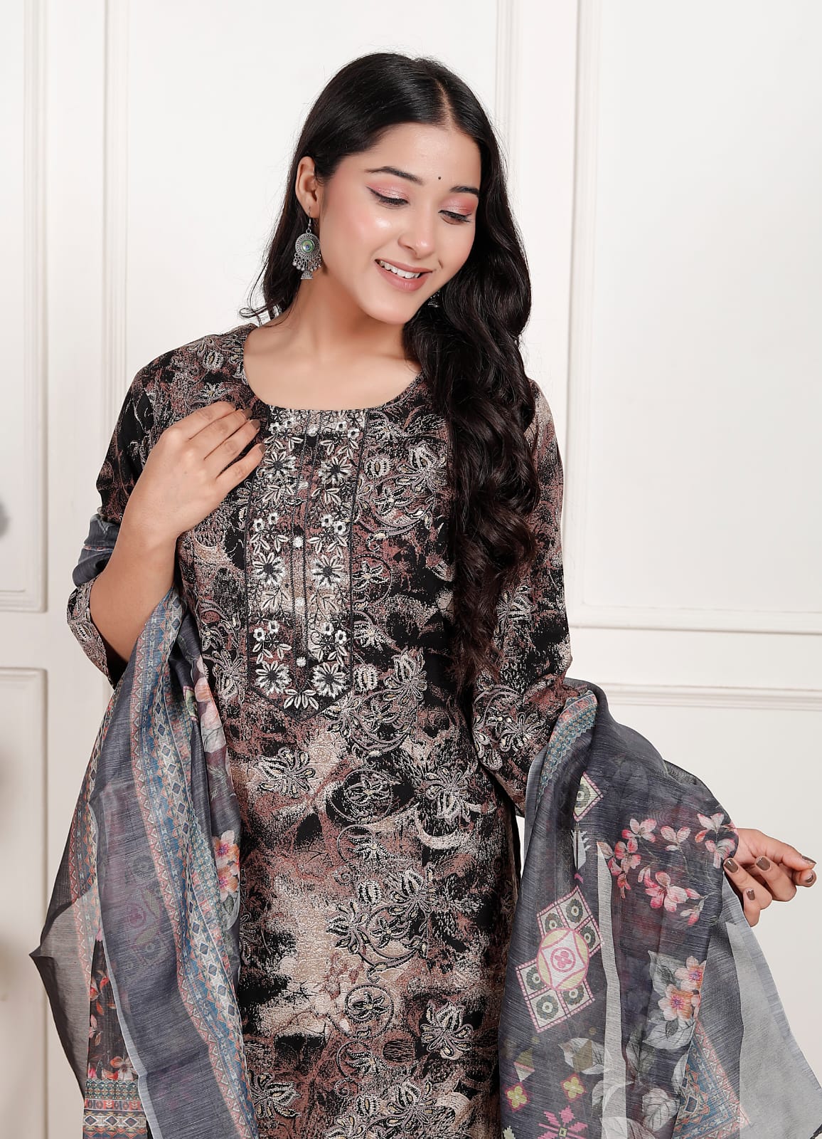 Floral Printed A- line Kurta & Straight Pant with Dupatta