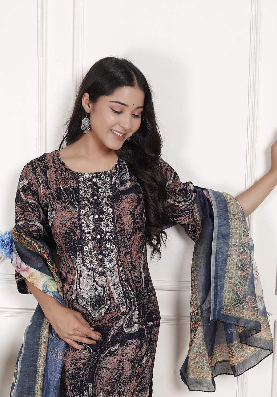 Floral Printed A- line Kurta & Straight Pant with Dupatta